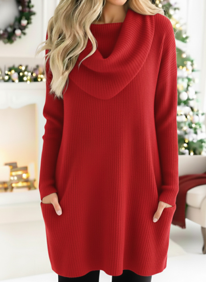 The cozy retro triangle cowl collar knitted sweater is a versatile and stylish addition to any wardrobe. With its unique design elements and comfortable fit, it is perfect for both casual outings and more formal occasions. Embrace the effortless elegance of this dress and let it become your go-to piece for a variety of events.